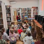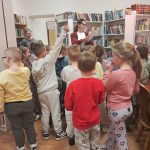 Naszą Bibliotekę, dnia 9 kwietnia 2026 r., odwiedziły dzieci z grupy „Pszczółki” wraz z panią Kasią i panią Małgosią.