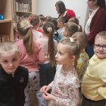 Przedszkolakom przedstawiono krótką historię powstania książki i przeczytano fragment powieści. Następnie mali uczestnicy spotkania wzięli udział we wspólnej zabawie, która polegała na odnalezieniu i zebraniu słoiczków z pysznym miodem, wykonując przy tym różne zadania.