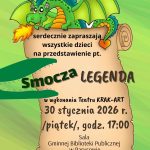 Wójt Gminy Parysów oraz Gminna Biblioteka Publiczna w Parysowie serdecznie zapraszają wszystkie dzieci na przedstawienie pt. „Smocza legenda” w wykonaniu Teatru KRAK-ART